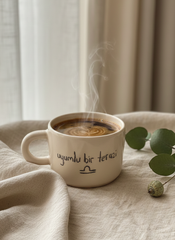 El yapımı Terazi burcu temalı geniş seramik kupa